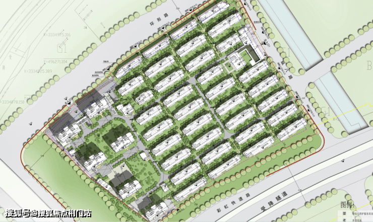 地块总用地面积65198㎡,总建筑面积162151.81㎡,地上建筑面积为97797㎡,其中住宅95451.3m²,配套用房2345.7m²,地下建筑面积为64354.81㎡,建筑密度为30%,容积率1.5,绿地率30%,住宅户数739户,配建机动车停车位1011辆。地块规划35幢3F排屋和6幢22-25F高层。