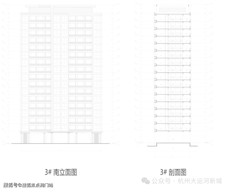 从剖面图来看,架空层高达5米,层高却只有3米。建筑外观和色调,类似如正在建设中的滨江映运轩项目。