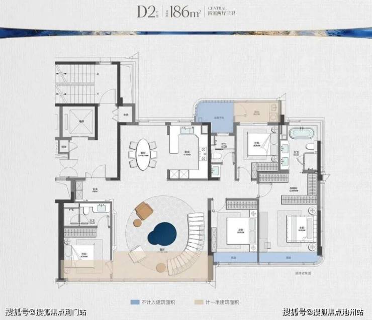 建发招商元序规划户型面积约139-156-166-178-188-233㎡,其中,233㎡户型图如下所示,含赠送得房率约89%。