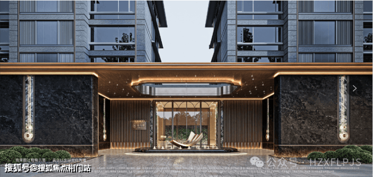望金马府再现星级酒店车库入口,使用仿铜铝方通、动感科技灯带、高级仿石纹铝板打造高级感入口,搭配项目发光Logo,仪式感拉满。