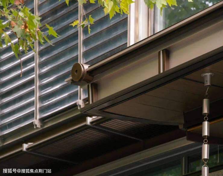 檐口部位对传统“版引檐”进行现代转译,檐下为模仿椽子形式的单元化金属格栅,工业化生产的构件极为纤细且经久耐用。