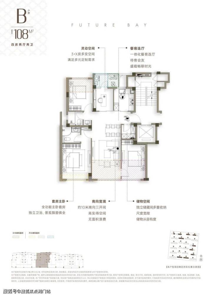 以约108方为例,X空间可以单独做书房,也可以和厨房打通;或者和北次卧,变成超级书房,等到有了孩子,它随时还能再变回去。