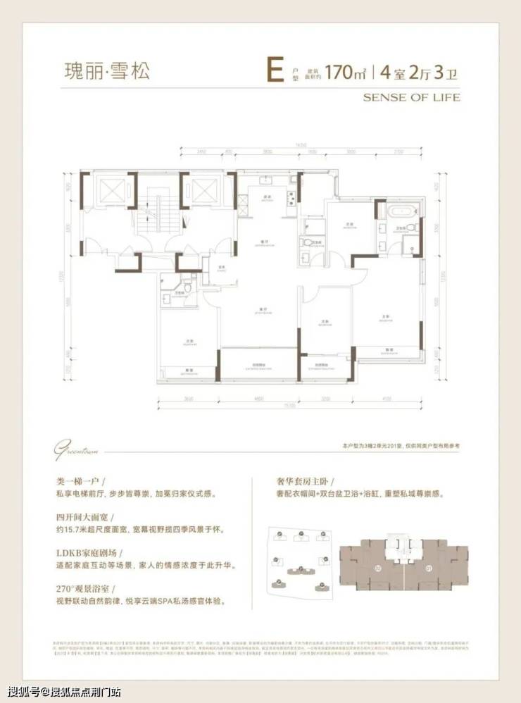 建面约170方户型,高质价比的四房优选: