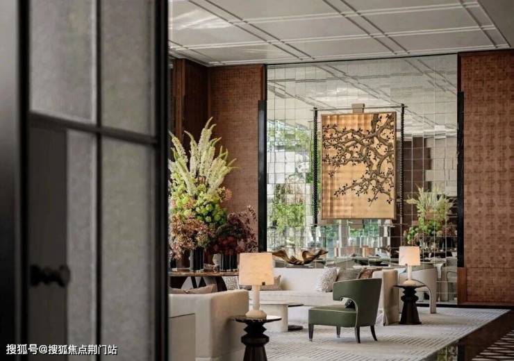 在生活馆里,你能看到发光石材的背景墙,瑰丽酒店同款壁灯、昂贵的黄虎眼奢石制作的接待台、同源瑰丽的风泥客石屏风、手工敲荔枝面……如此多华贵材质的运用,不经意一瞥都会被惊艳到。
