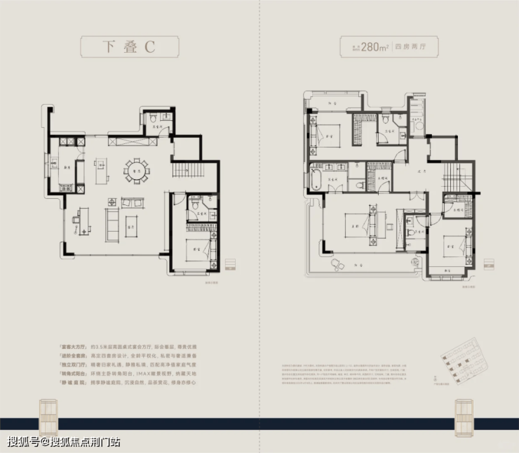 本项目主打户型面积约为210至280平方米,精心设计下叠与上叠首层,均配备南北独立入户门,地下室亦设有南北双向入户门厅及独立车位。上下叠巧妙规划,实现“无交集归家动线”,营造出仿佛无邻居打扰的私密空间。此外,上下叠均设有独立的层高6米的地下室,室内空间采用全套房设计,首层挑高约3.6米。无论是下叠还是上叠,均代表着当前市场产品力的巅峰之作。
