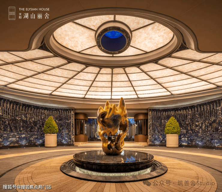 小区大门门头铜雕作品是由国家级工艺美术大师、非遗铜雕技艺传承巨匠朱炳仁先生亲手打造的【铸境湖山】铜雕巨作,现惊艳亮相。高达2.6米的这座铜雕,以其雄伟身姿,注定成为天阳湖山丽舍的璀璨艺术地标。