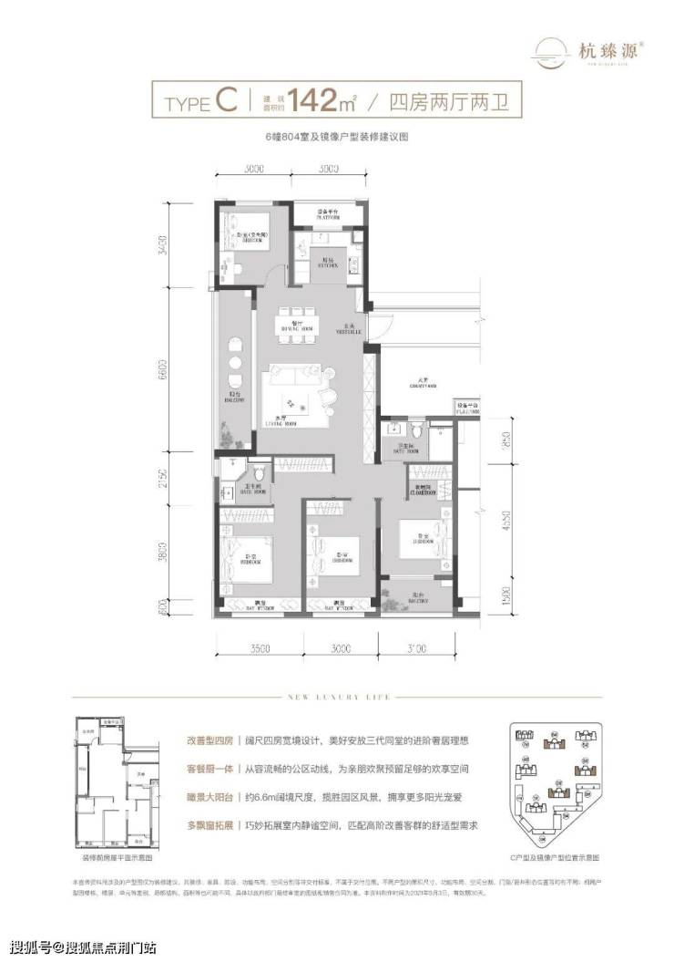 项目共规划了7栋高层,6栋可售住宅,规划户型建面约为105-142㎡,满足不同家庭结构的购房需求。