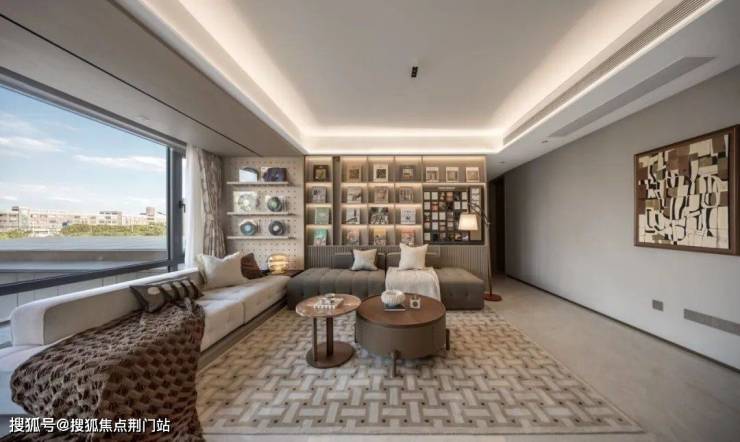 建面约103㎡的边套更是堪称神迹,将小户型的空间魔法玩到了极致。 客厅到阳台的地面、 天花直接拉通, 甚至两侧的墙垛都已隐身, 整个餐客厅面积达到约35㎡(含阳台),这可是140㎡以上大宅才有的空间感!