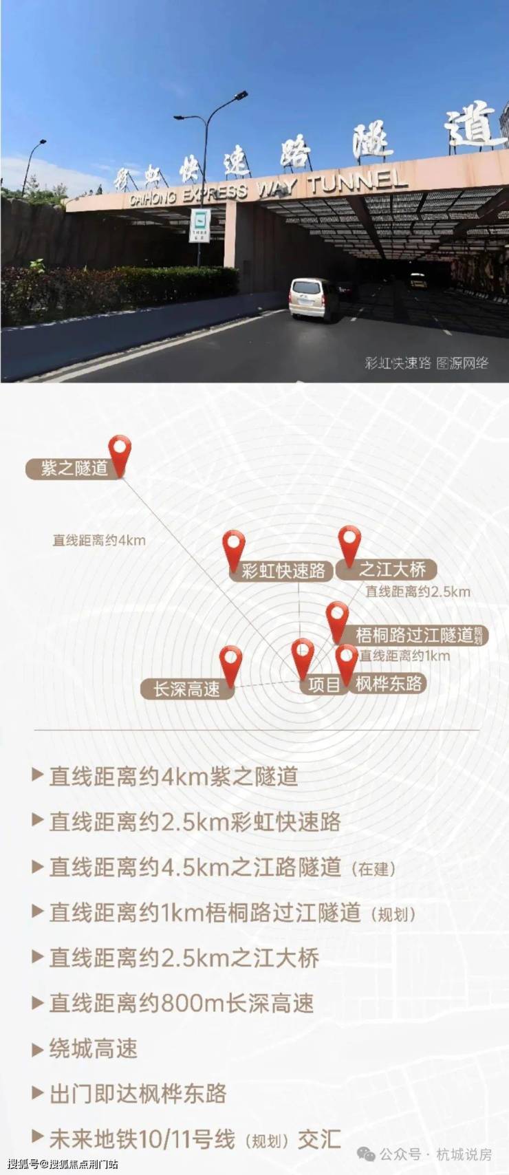 【往城西】直线距离约4km联通紫之隧道