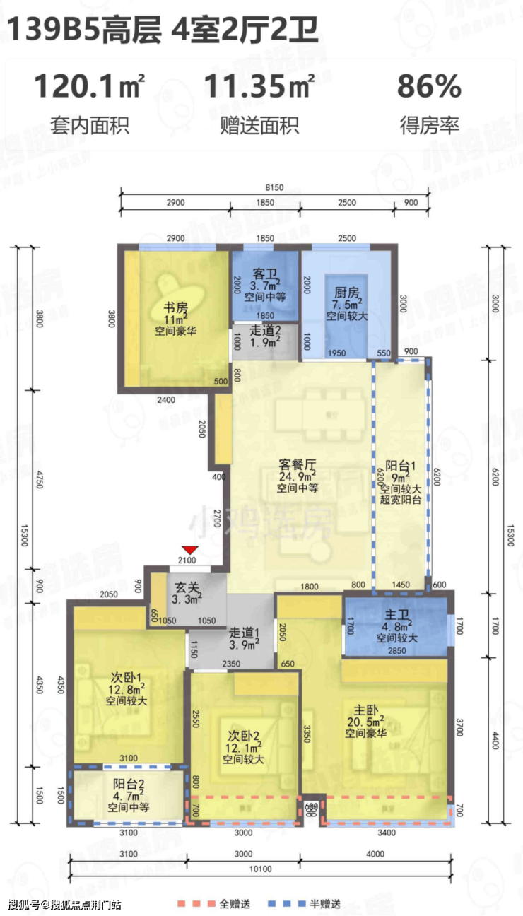 【得 房 率】:含赠送86-90%