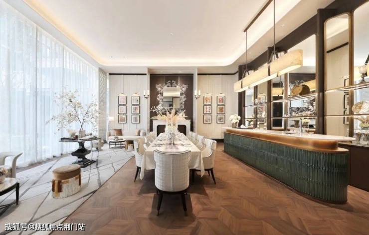 【外立面】建筑立面秉承极简主义理念,通过公建化的精致处理,将功能与美学完美融合。全景落地窗如同精心设计的取景框,将潋滟湖光尽数纳入室内空间。层叠的横向线条随日光流转而变幻,宛若湖面微波的韵律再现。金色装饰细节的点缀,恰似"金镶玉"的东方美学,在简约中透露出海派建筑的典雅气质