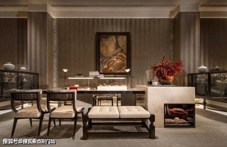 设计师巧妙提取良渚文化的线条语言,将那些镌刻在玉器上的古老符号与自然生长的图谱完美融合。水波纹琉璃壁灯将流动的液态美学凝固于金属支架之间,以光的韵律谱写现代隐奢。
