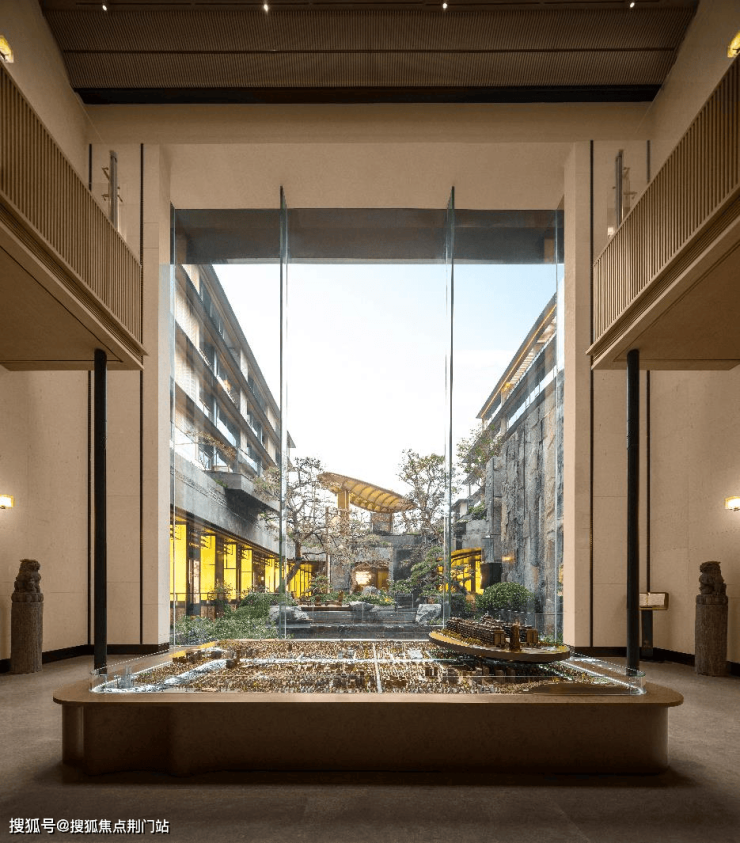 它曲水流觞,绕园而行,直至落差约12米的三层下沉式庭院,化作层层跌落的瀑布,刚柔并济,气象万千。