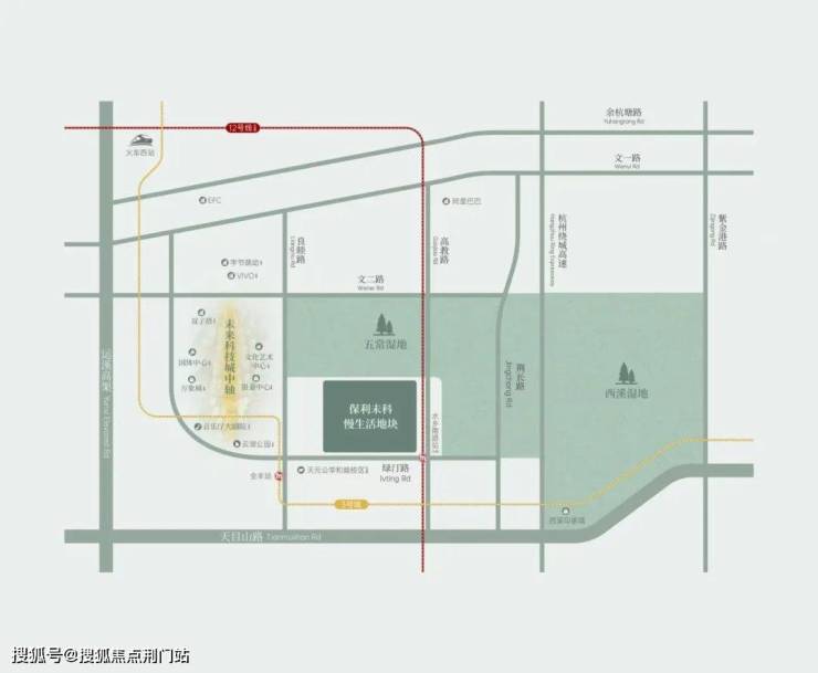 更让人期待的还有是规划中的世界级中轴线,全长约 2.5 公里,总面积约 1.55 平方公里。中轴线聚焦打造五大城市功能板块,包括市民公园、国际商务区、艺术文化商业街区、未来总部区、国际滨水文化区,由国际知名的福斯特事务所中标设计,其建成后将成为杭州城市未来的新地标,而本项目也将凭借其地理位置,充分受益于这些高端城市功能板块所带来的价值提升。