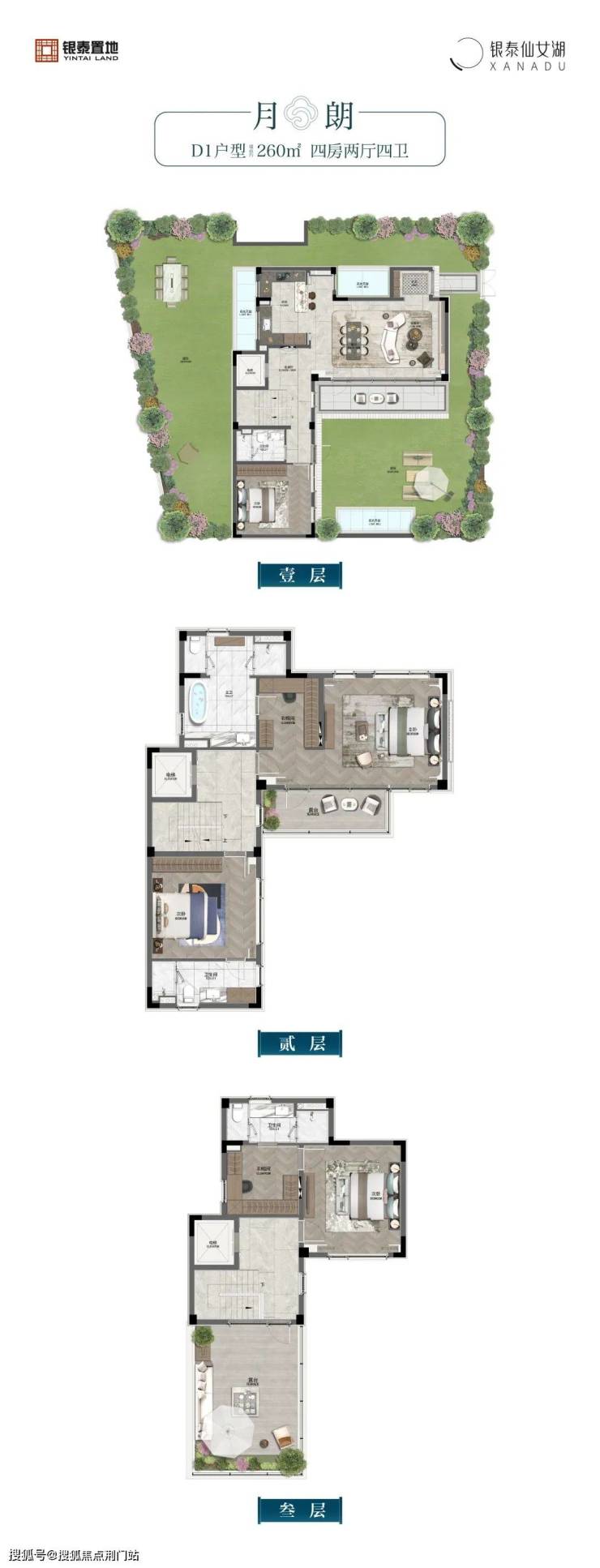 地上三层(一层3.4米、二层3米、三层2.9米+坡屋顶),地下一层(层高3.2米-6.8米)独门独户,拥有无数人垂涎的前庭、后院生活,将仙女湖畔的深林与小径美景延伸到园里来,开启庄园般的自在奢享。