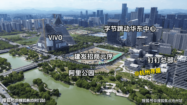 项目周边以商业办公楼为主,紧邻钉钉总部、VIVO全球AI研发中心、字节跳动华东中心等办公楼,南侧为景观河道和阿里公园,居住环境还不错。