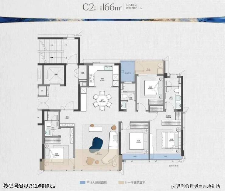 建发招商元序规划户型面积约139-156-166-178-188-233㎡,其中,233㎡户型图如下所示,含赠送得房率约89%。