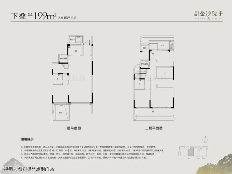 项目所在地块容积率仅为2.5,天生承载“高低配”。高层户型建面约96-145㎡;叠墅户型建面约199-255㎡。金沙院子——兴耀首个超级院墅,上下双叠。上叠面积255方,下叠约245方,最小花园115方。