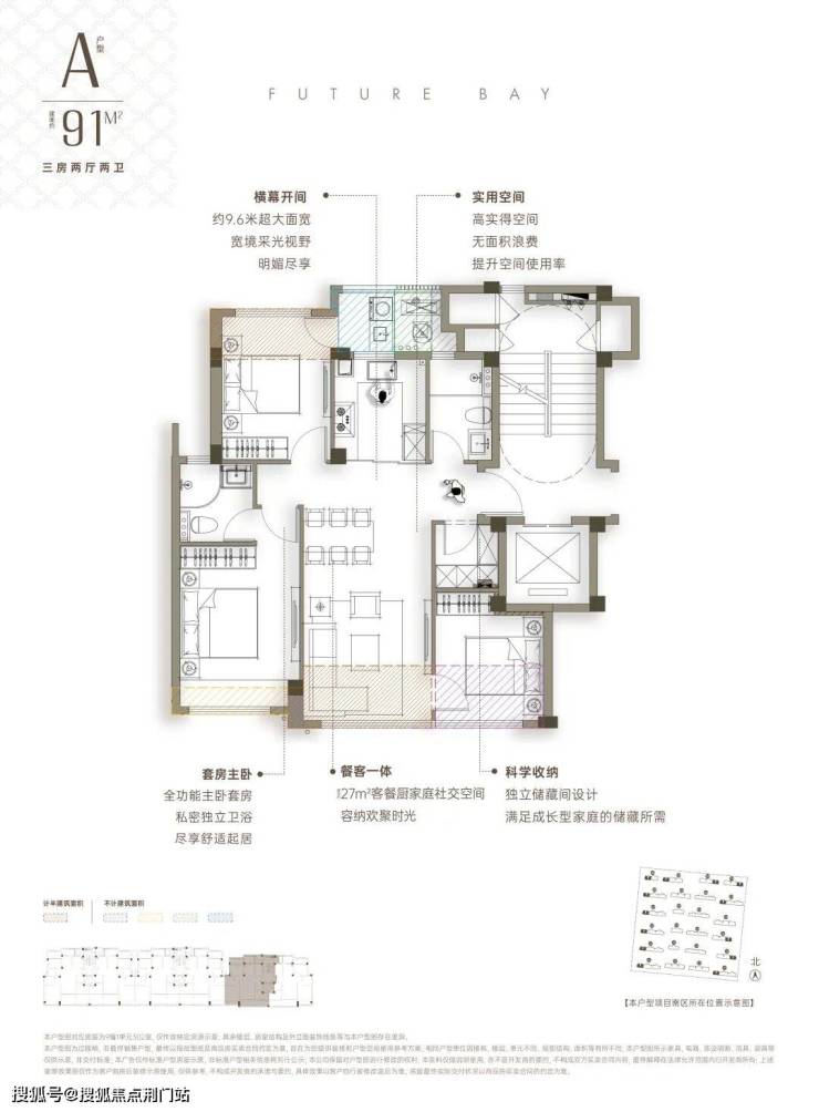 建面约91-167方的面积段,覆盖全龄段的户型,套内使用率最高达95%,并且也进行了全面的创新。