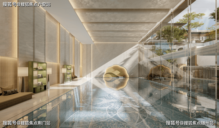 从约6米挑高的恒温泳池望出去,一座廊桥飞架于半空,恰似“人在画中行”。这是只属于雲润宸庐的“空中泳廊美学”。