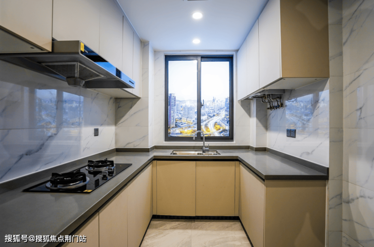 U型厨房窗户较大、采光优秀,且大量收纳柜体都做好: