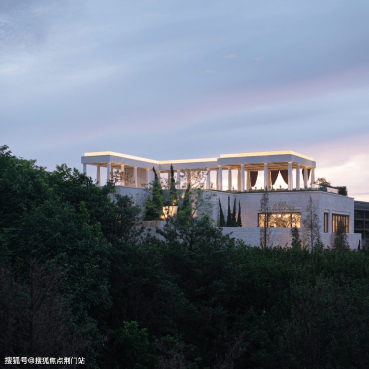 月恒宫和日昇台在项目的南侧,依托地形展开,打造一个轻松浪漫的氛围,对标与希腊安曼卓熠酒店的空间方式,抬升建筑空间形成立体院落的游园空间。