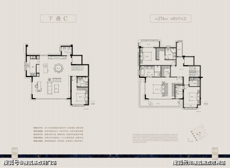 功能划分上,做到动静分离。上叠将卧室设置在三层,客餐厅放置在四层,外联大露台,有效避免与下叠静区的相互影响,业主在享受家庭欢聚的同时,也能拥有宁静的休憩环境。