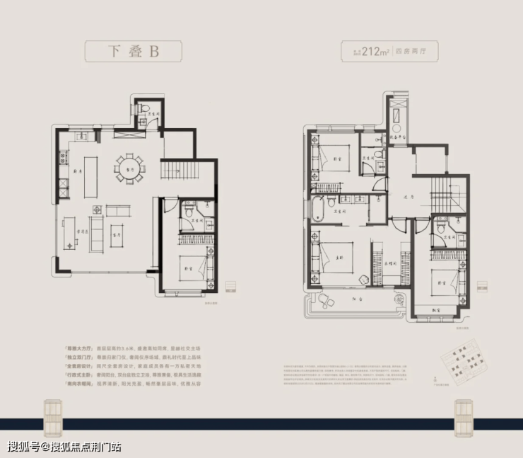 本项目主打户型面积约为210至280平方米,精心设计下叠与上叠首层,均配备南北独立入户门,地下室亦设有南北双向入户门厅及独立车位。上下叠巧妙规划,实现“无交集归家动线”,营造出仿佛无邻居打扰的私密空间。此外,上下叠均设有独立的层高6米的地下室,室内空间采用全套房设计,首层挑高约3.6米。无论是下叠还是上叠,均代表着当前市场产品力的巅峰之作。