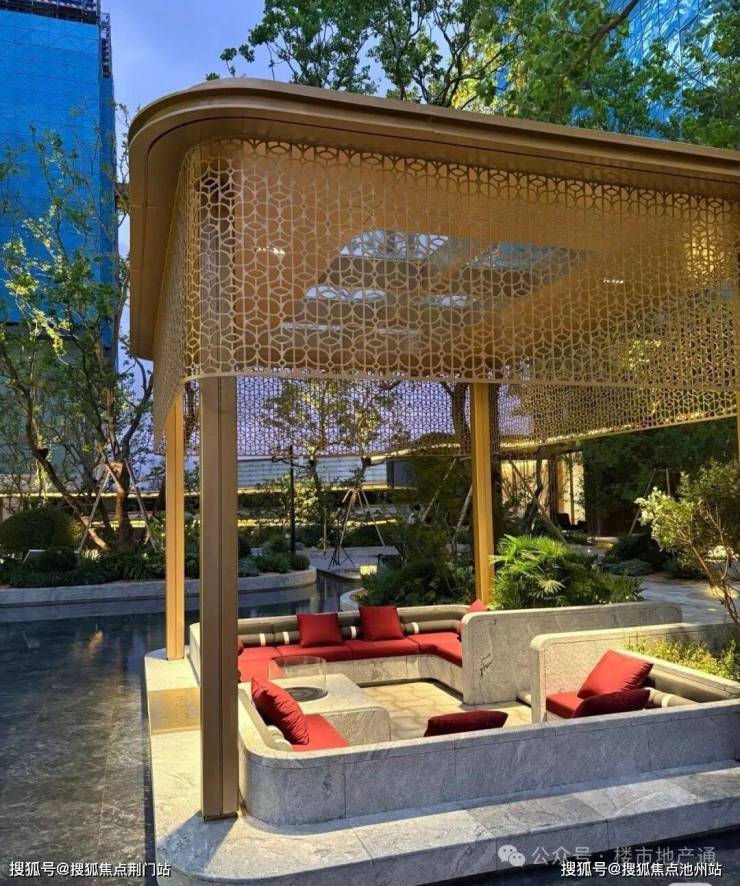 作为之江第一个“抬高设计项目”,拾级而上,一步一景,立体园景叠水+喷雾,高低错落,做的非常像下沉式庭院的感觉;展示区水系景观比想象中的多,绿植搭配也更丰富,满满的热带度假风格,还有局部风雨连廊和户外泳池等景观