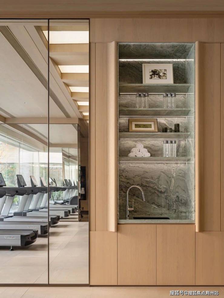 会所室内空间由CCD创始人郑忠先生主笔,参考艾迪逊酒店设计,打造出一副星河玉翠之境。3000㎡地下会所,融合了良渚玉琮纹样与现代材质,天珺为其取名:玉石枫林会所。