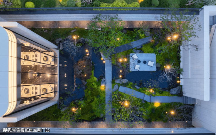 地下泛会所和立体花园互相嵌套,泛会所面向花园的约12米通高玻璃,使得无论你置身在哪一层,都能感受到庭院内春夏秋冬的流转。以庭院为中心,嵌入了普拉提、女王厅、书吧等功能空间,最特别的是还有SPA馆,这一般是杭州的大平层才有的配置。