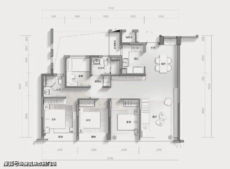 特别值得一提的是,户型设有独立电梯前厅,具备一定的私密性和收纳空间,电梯厅、设备阳台与书房互通,在可改性上也留有空间想象力。