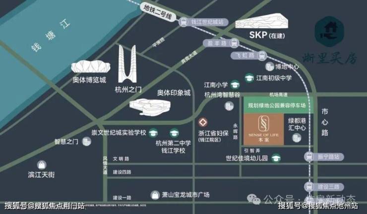 距地铁2号线振宁路站B口直线距离仅约150米,2站杭州SKP,4站钱江新城核心;3站萧山万象汇。距城市主干道市心北路直线距离仅约160米,贯穿世纪城,快速通达杭州全城。