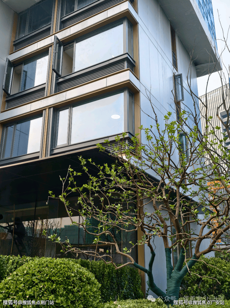 外立面采用窄边框设计,呈现全面屏效果,以极细银白色、深灰色铝线条勾勒出艺术画框的精致轮廓。每一层更以香槟金铝板线条打造独特小画框,镶嵌大面积晶钻玻璃,尽显超级平面美学。