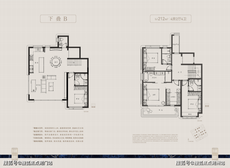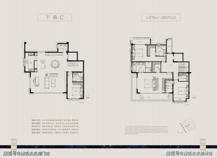 功能划分上,做到动静分离。上叠将卧室设置在三层,客餐厅放置在四层,外联大露台,有效避免与下叠静区的相互影响,业主在享受家庭欢聚的同时,也能拥有宁静的休憩环境。
