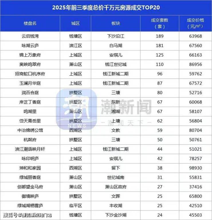 2025年杭州上半年,低密销售金额、销售套数、销售面积「三冠王」;江景小高层首开至今仅3个月,即将售罄……(数据来源:袋鼠汇)