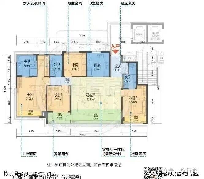 105㎡:LDKB一体化,6.8米双联阳台,得房率约82%23