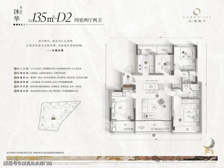 沐新月作为M55系第三个作品,以林汐美学为源点,承袭大水院美学、夜行者美学、疏密相间的漂浮美学等经典元素,更是因地制宜,打造无界自然的水岸森居,环绕建筑的都会森林、环绕园林的美学潮汐、环绕水景的漂浮岛屿的三重景观美学,理想生活如新月变幻,迭新不息。