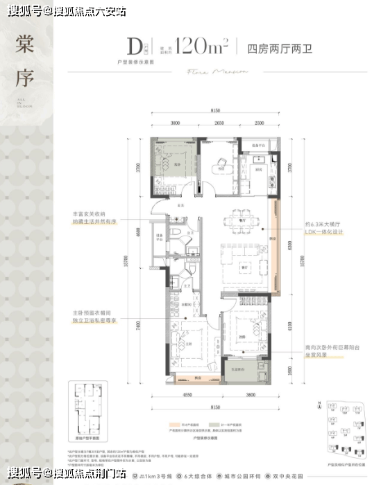 120m²的四房边套设计,两房南两房北,三面采光,主卧套房设计,满足一家四口或者三代同堂的居住需求。超高得房率!!