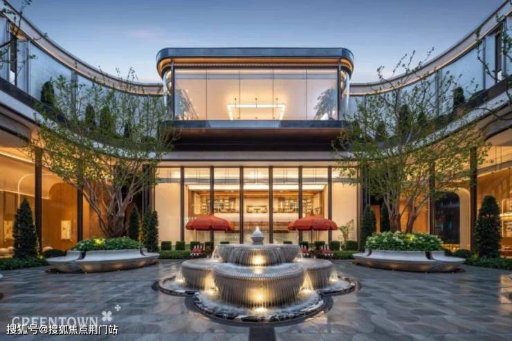 下沉式庭院遵循“秩序美学”,水花飞溅,如珠玉散落,在阳光下闪烁晶莹,为庭院注入灵动之韵。