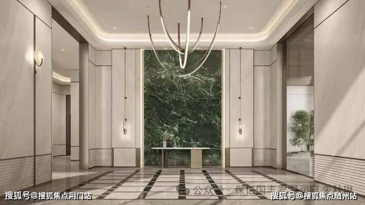 首层超高入户大堂,普拉达绿奢石背景墙
