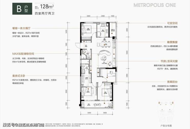 起步的建面约110㎡就是主力户型之一,将“世纪城生活圈”的门槛价定在了300万;而约110-172㎡的面积段设置,则稳住了整个项目的改善基因。
