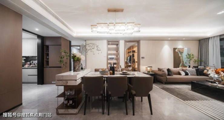 约33.5㎡的客餐厅连通约10.5㎡南向阳台,将视野一下子就打开了。
