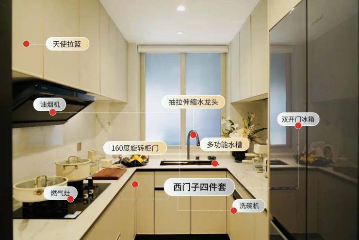 标配全屋智能化、西门子厨电四件套(含双开门冰箱)、智能马桶、美妆冰箱(主卫)等奢装细节,让大四房改善品级满格。