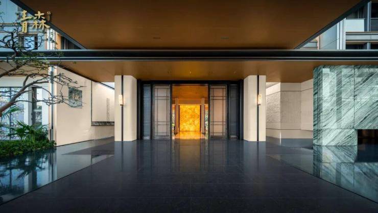 入口处约113米宽的酒店式门头,采用香格里拉奢石与贝金米黄石材,步入其中犹如置身高奢度假酒店的既视感。