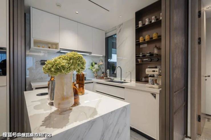 而且,这款户型客厅与次卧能打通,作为一个大公区,加上开放式厨房,空间一体化的奢阔感更足。