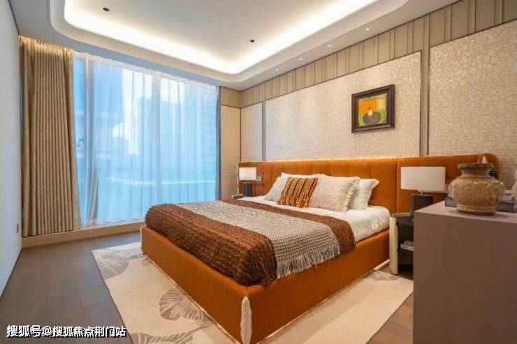 每一个卧室,则是都拥有专属的背景墙,珍珠鱼皮与香奈儿格纹材质的搭配、菲律宾贝母手工工艺,还有麂皮纹、编织皮革等用材,都出现在了不同的卧室背景墙上……明知道这样做的成本更高、豪宅更多,但是依然坚持,为的就是给予业主更美观的享受。