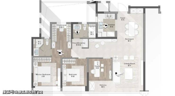应对市场相同面积段下的产品,我们利用对封闭阳台等的计容规则变化,挖掘和提升户型产品的功能潜力,在满足置业者刚性需求的前提之下,试图提供空间多样性组合的可能,也因此赋予户型多样的居住性格。