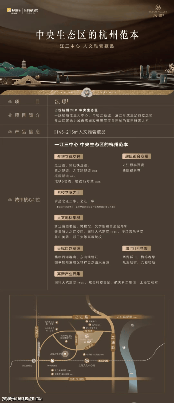 首先,你选择的是全杭州的轻奢板块之江,之江三方位辐射未科、钱新、滨江,且还在板块抬升,发展潜力明确!