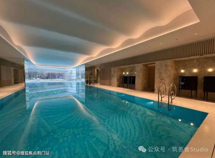 泳池设计令人赞叹不已,天花与墙面,以及泳池马赛克波浪的巧妙呼应,展现了高度的和谐统一。精选莫奈花园奢石,融入四叶草元素,搭配软装花朵沙发,泳池扶手的卷草图案尽显自然风情,令人耳目一新。该项目巧妙地将扶手打造得美观大方,实属难得。休息区巧妙设置为凹龛式,虽然实用性有待考量,但其硬装化的处理手法独树一帜。运用中古柜子替代传统硬装,为储物功能提供了全新的诠释。